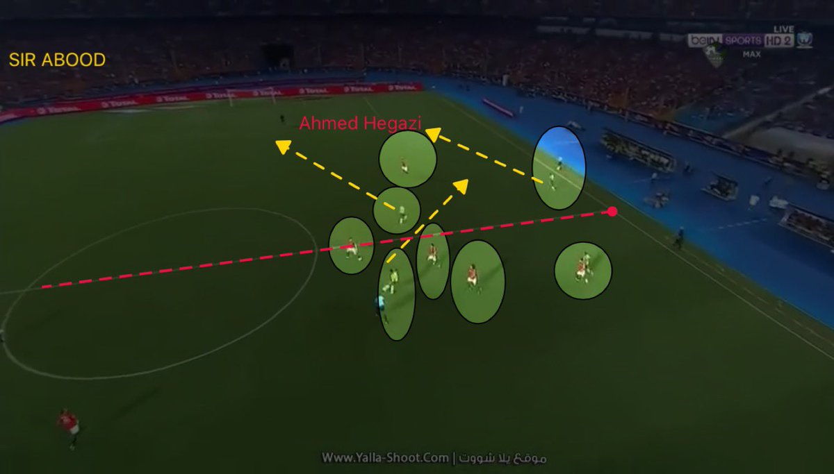 ▫️هنا - حالات - متعددة توضح لك دور #أحمد_حجازي في دوره الفعال بالتعامل مع -الكرات الطويلة- ، معتمدًا على طوله الفارع البالغ بين ١٩٣-١٩٥ وقوة جسده ، المميز في #حجازي أن تشتيته للكرات الرأسية يكون في الغالب على - أطراف المنطقة - أو للاعب معين يستهدفه تحديدًا، ونادرًا مايكون عشوائي
