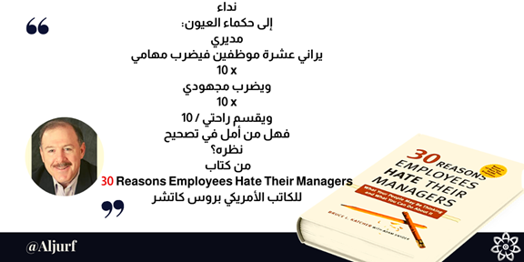 رد قائلا: "بل مديرنا من يجب أن يقوم بعملية تصحيح نظر، فكثيرا ما أشعر أنه لا يرانا ٢، بل يرانا ١٠ موظفين، لذا يضرب مهامنا x ١٠