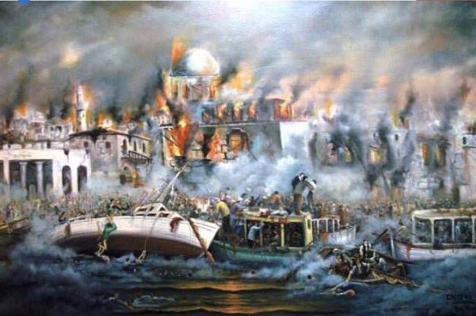 واجبرت 400،000 شخص من المدنيين اليونان والأرمن على الفرار من منازلهم. وعلى الرغم من نفي تركيا لأي دور لها، إلا أن معظم المؤرخين أجمعوا على أن هذه النيران كانت مفتعلة وأنها كانت جزء من الإبادة الجماعية التي حصلت خلال الحرب التركية اليونانية