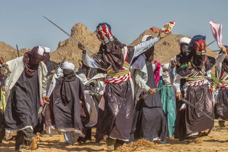 إنهم الرجال الزرق الذين يحترزون من ملكة الجن وتعاويذها عبر ستر وجوههم بلثام محكم يقيهم من تسرب الأرواح الشريرة وأثر التعاويذ، لكن عقاب ملكة الجن لهم ولتحديهم لها مصيبهم مهما احترزوا، وعقابهم هو حرمان أبنائهم من الملك وجعله فقط في أبناء النساء، هكذا بنوا أسطورتهم وتصورها!