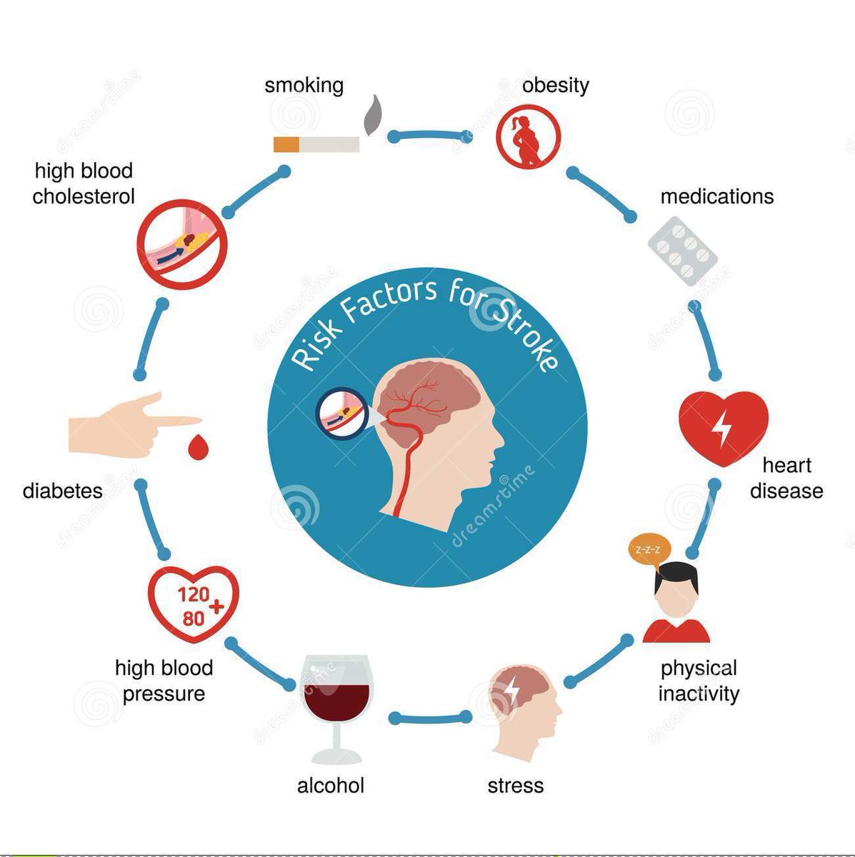 ⁃ العوامل الطبية ( Medical Risk Factor ) : ( إرتفاع ضغط الدم، مرض السكر، إرتفاع الكولسترول ، أمراض القلب ، التدخين ، مشاكل انقطاع النفس في النوم ، وجود حالات سكتة دماغية في تاريخ العائلة) و مؤخراً تم إضافة كورونا COVID-19.