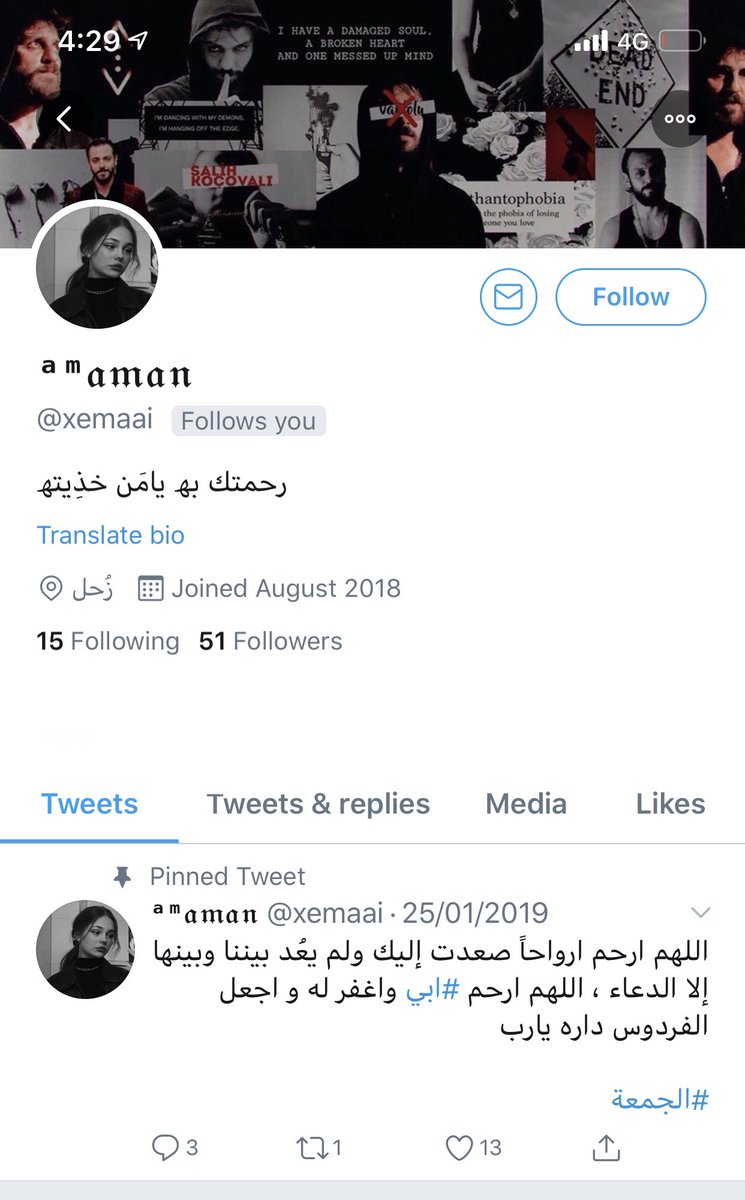 حساب ايمان صاحبة القصة اللي تعلم الصبر والرضا بقضاء الله وقدره، على الرغم من صغر سنها💙🙌🏻..