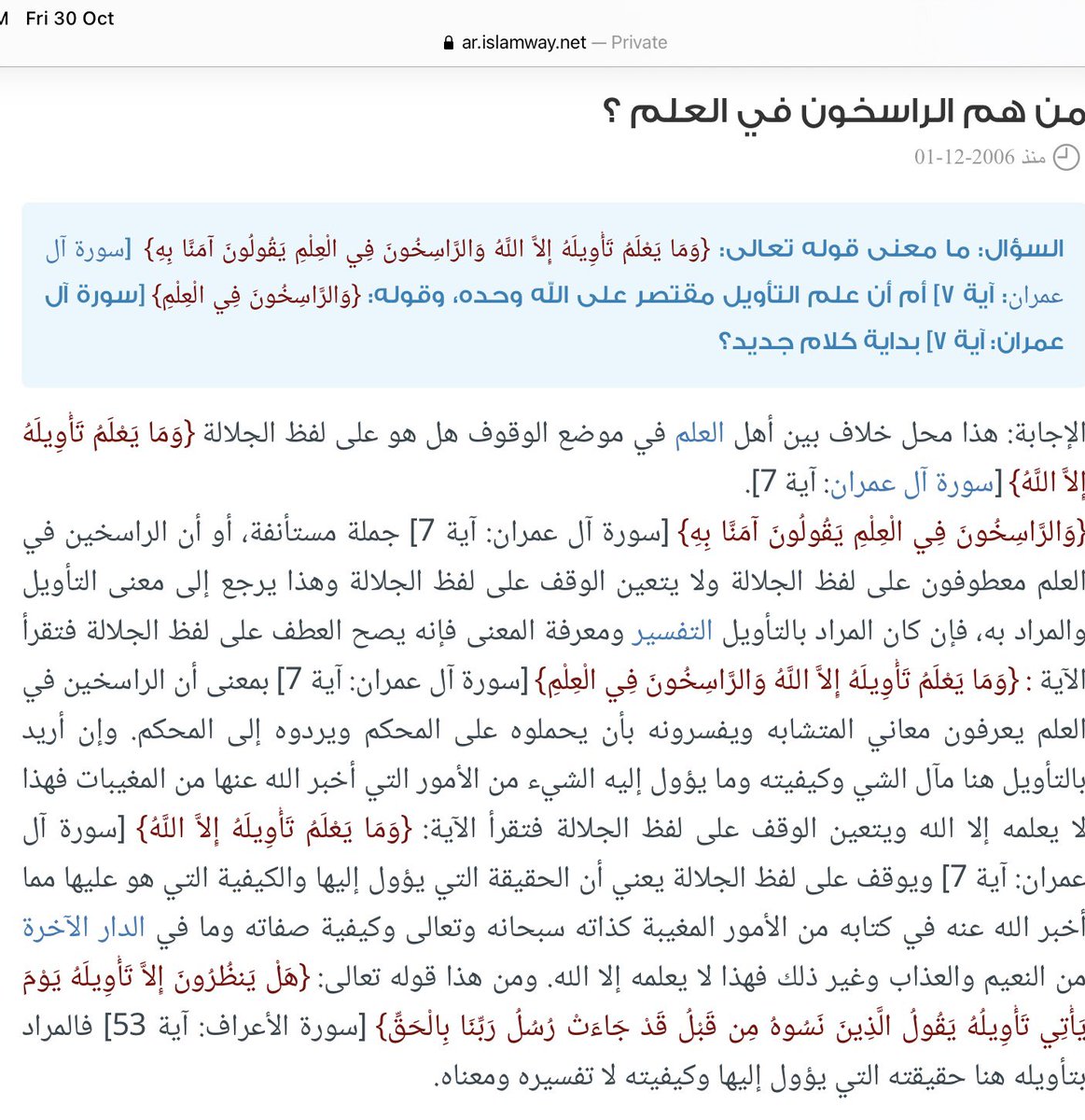 🔹بالوقف عند لفظ الجلالة،أي الحقيقة التي يؤول إليها والكيفية التي هو عليها مما أخبر عنه في كتابه من الأمور المغيبة كذاته وصفاته👇