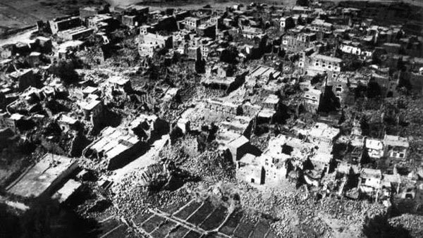 دمر الزلزال بقعا محيطها 840 كم فى بعض المقاطعات، وتشير مصادر إلى مقتل حوالى 60% من سكانها، حيث استمرت الهزات التابعة بالمعاودة عدة مرات فى الشهر ولمدة نصف سنة .