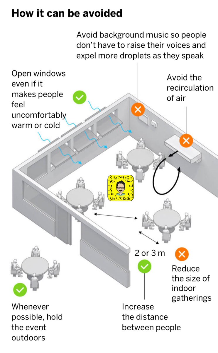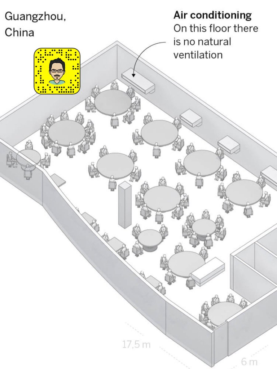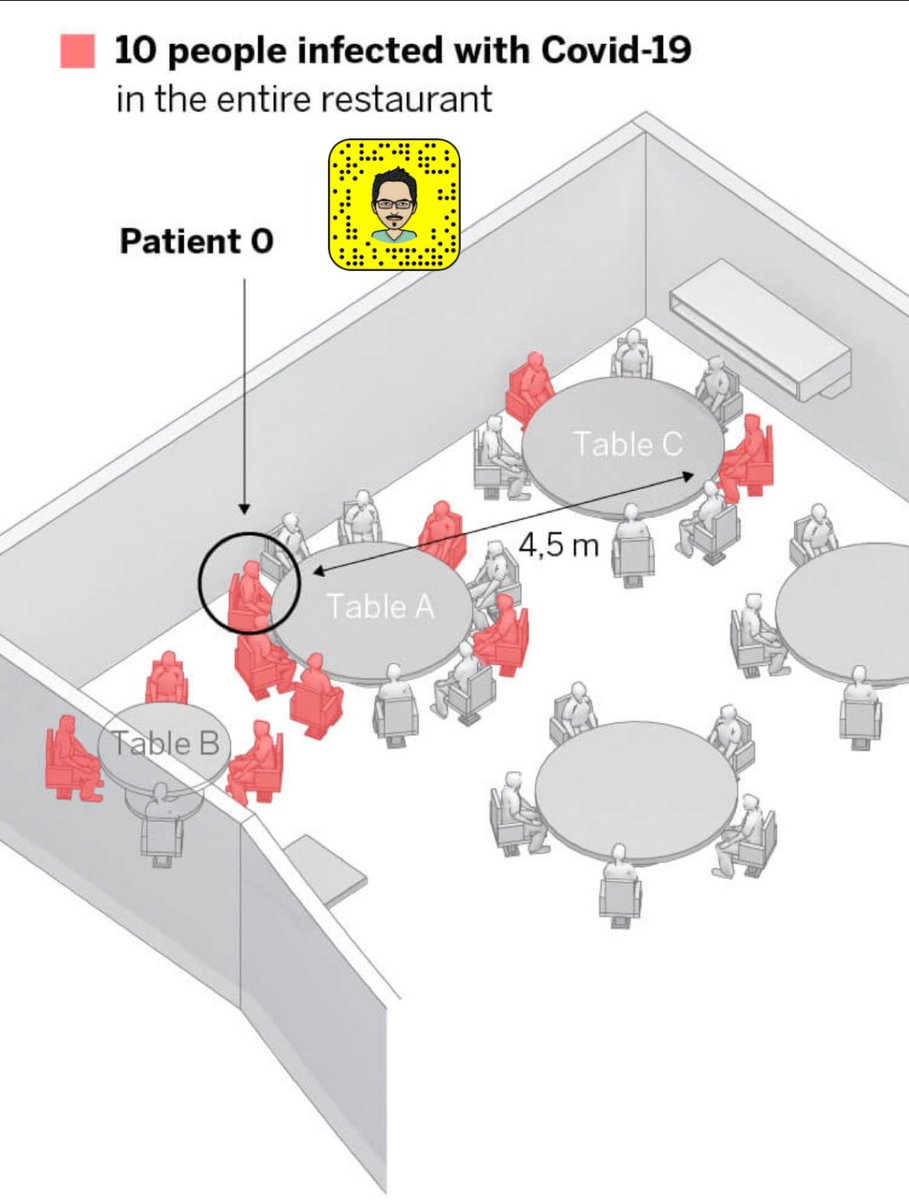 مترين لاتكفي داخل الأماكن المغلقة انتقال الفيروس بالرغم من وجود تباعد تفشي فيروس كورونا في مطعم تابع سلسلة تغريدات عن حدث تم دراسته بدقة متناهية 1️⃣ ..يتبع