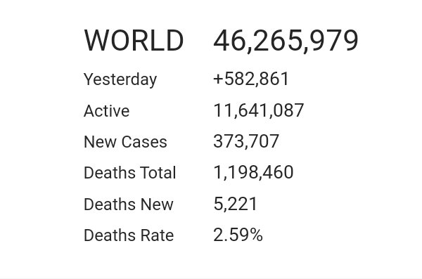 من تاريخ 7نوفمبر وحتي تاريخ 14 نوفمبر ، بلغ عدد الاصابات بكورونا حول العالم أربعة ملايين ونصف .