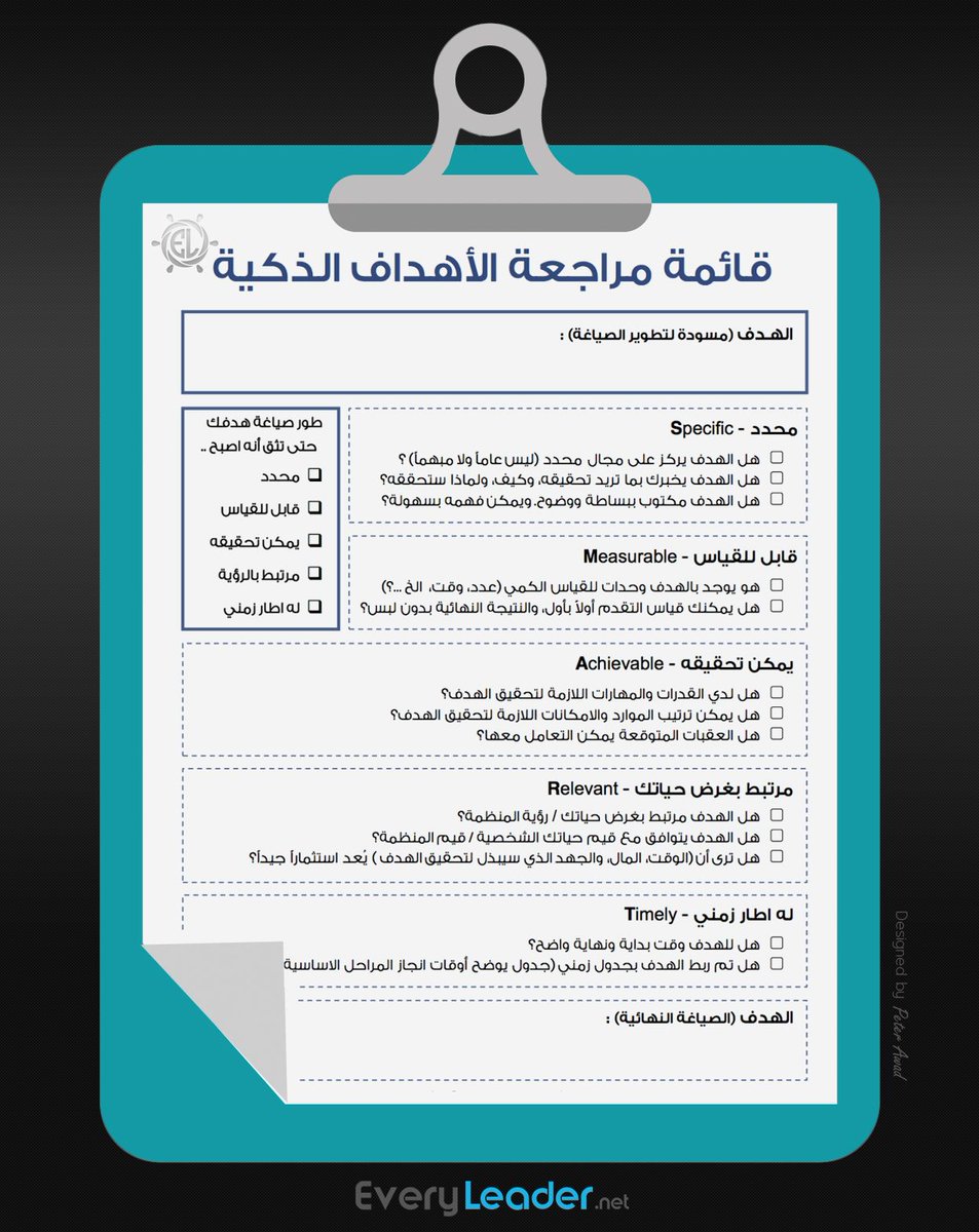 اكتب اهدافك بوضوح وبشكل ذكي ثم نفذها وتابع تقدمك بكل اصرار ومثابرة