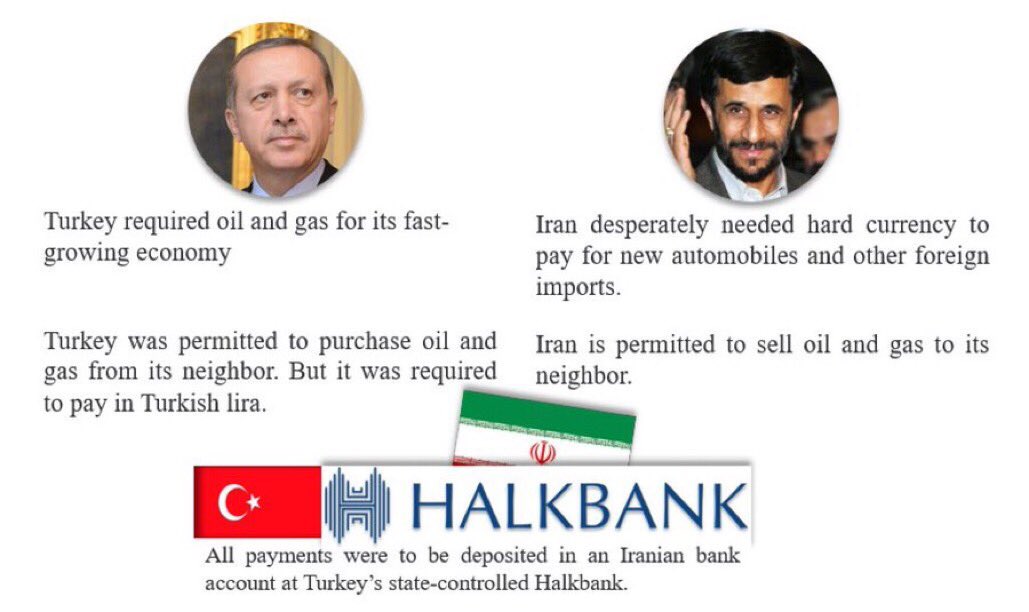 كان متورطًا اردوغان بشكل مباشر في مخطط الذهب مقابل النفط ورشاوى بمليارات الدولارات من النظام الايراني مجاوزاً العقوبات الامريكية فعل كل ذلك عبر رضا ضراب التاجر الايراني التركي الذي يخضع الان لتحقيق ونظام حماية الشهود في الولايات المتحدة 4️⃣