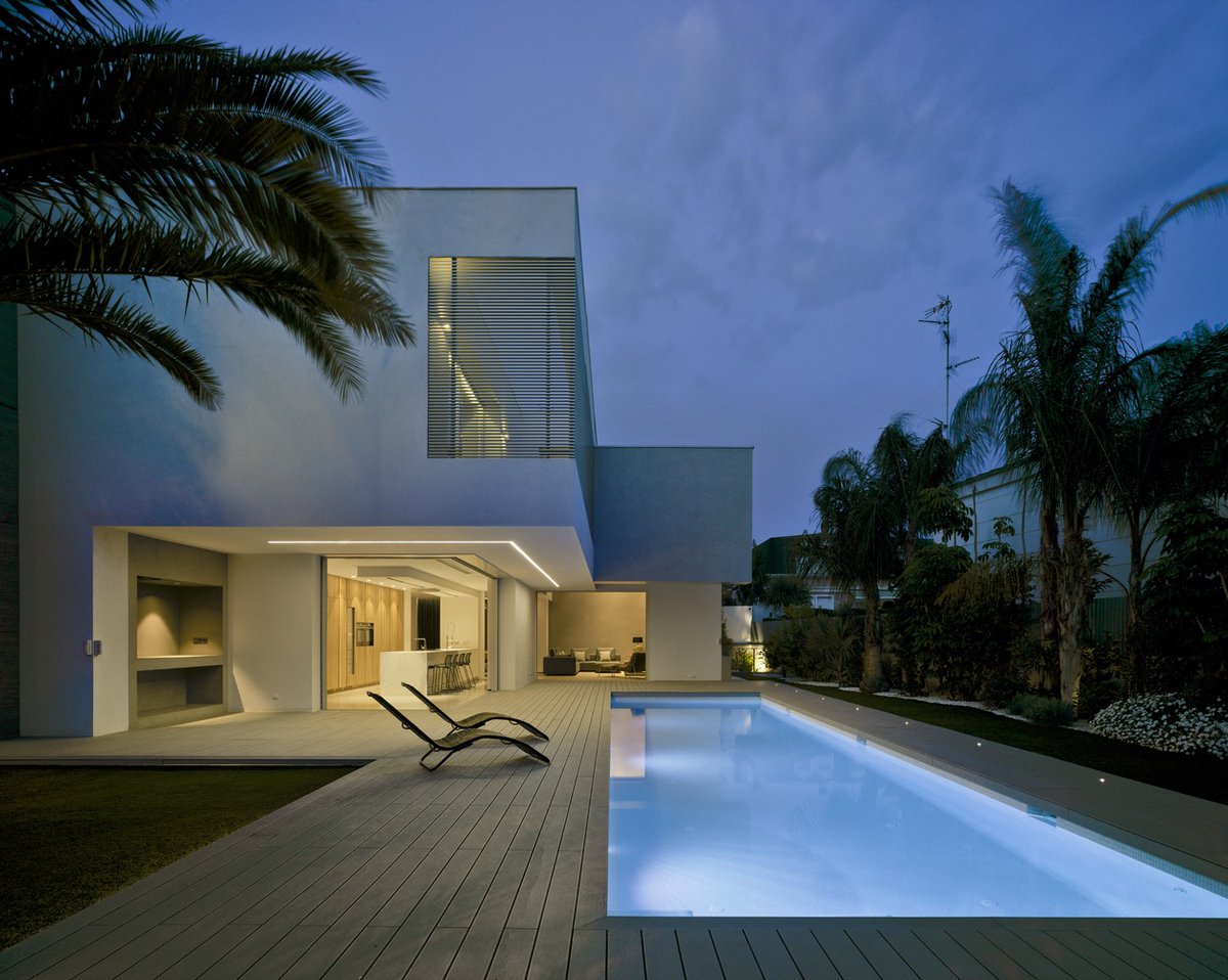 إن الجلسة الخارجية والمسبح هي أهم ما يميز هذا المنزل ولذلك أصبحت هي النقطة الأهم بصرياً والتي تتجه إليها جميع فراغات المنزل ,,,