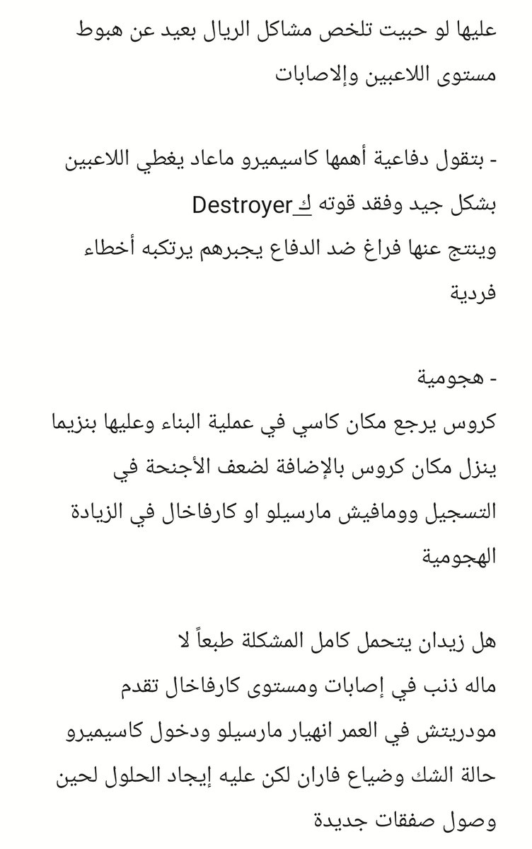 وايسكو خارج التغطية فصار زيدان علشان يتجنب أخطاء كاسي انه يطلعه لفوق كمهاجم ثاني احيانا، والنتيجة أننا نفقد لاعب في جزئية مابعد دائرة المنتصف او في الثلث الأول والثاني من ملعب الخصم بسبب ان كروس رجع مكان كاسي