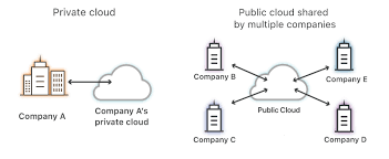 مثال للخدمات السحابية العامة (Public Cloud) مايكروسوفت Azure، امازون AWS وغيرها من مزودي الخدمة.