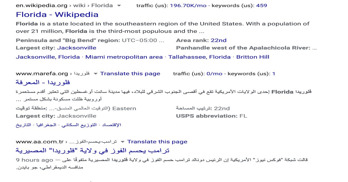 قارن بين جوجل وتويتر بالبحث عن #Florida