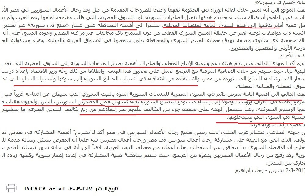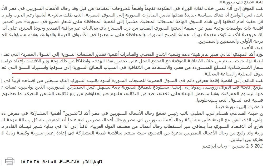 الاتفاقيات دي #بشار_الاسد معتمد فيها على "تجمع رجال الأعمال السوريين في مصر" حسب ما مكتوب في التقرير