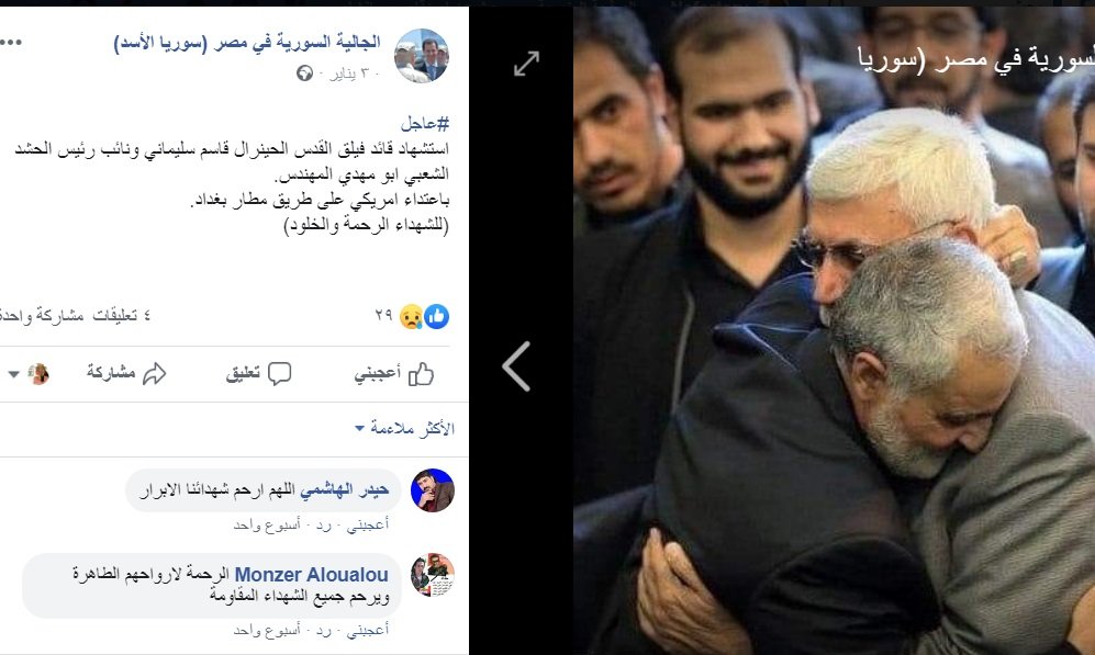 وده ظهر من النواح اللي عملوه على صفحاتهم اللي عاملينها في مصر لما اتقتل #قاسم_سليماني وسموه بالشهيد (الصور فوق)