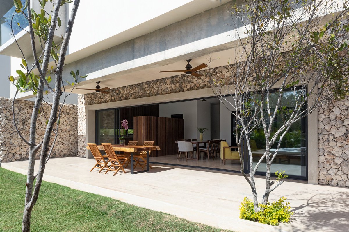 وهنا تتجلى علاقة الفراغات الداخلية مع الخارجية بأبسط صورها , لم يكن ليكون لصالة الجلوس في هذا المنزل هذا الإمتداد البصري بدون دراسة وادراك للمفاهيم المعمارية والبصرية ,,,