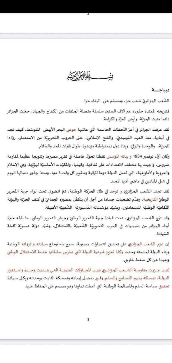 حجم المؤامرة التي تحاك ضد الجزائر ببرمجة العقول التي لا تطلع ومن بعض الخونة بما فيهم الاسلامويون علما ان هاته المادة موجودة في دستور 2016 ولم نسمع حولها ولو كلمة و خاصة ممن يدعون انهم اسلاميون لماذا هذا اللغط اليوم عليها و بقوة ، افق اخي المواطن انهم يستغلونك نظير حسك الوطني و
