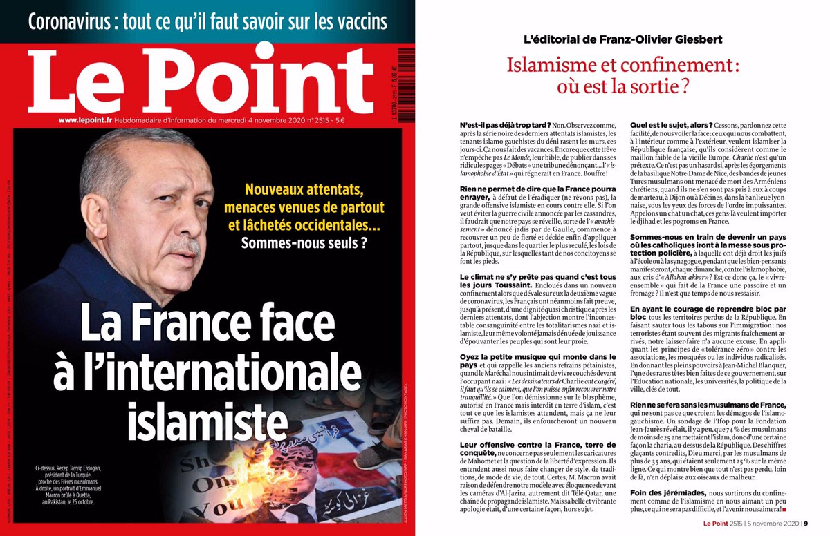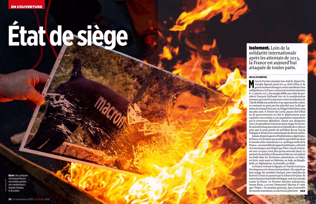موضوع مجلة Le Point الفرنسية ( #فرنسا في مواجهة العالم الإسلامي ) جاء بكثير من الاعترافات بالهزيمة أمام رد فعل المسلمين ، وخيبة الأمل من الحلفاء المسيحيين الذين لم يصطفوا معها في هذه المعركة !!