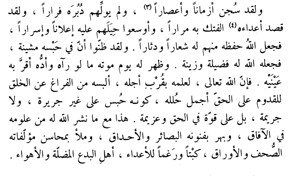 وكان لا يذكر رسول الله ﷺقط إلا ويصلي ويسلم عليه، ولاوالله ما رأيت أحدا أشد تعظيما لرسول اللهﷺولا أحرص على اتباعه ونصر ما جاء به منه،حتى إذا كان أورد شيئا من حديثه في مسألةويرى أنه لم ينسخه شيءغيره من حديثه يعمل به ويقضي ويفتي بمقتضاه،ولا يلتفت إلى غيره من المخلوقين كائنا من كان