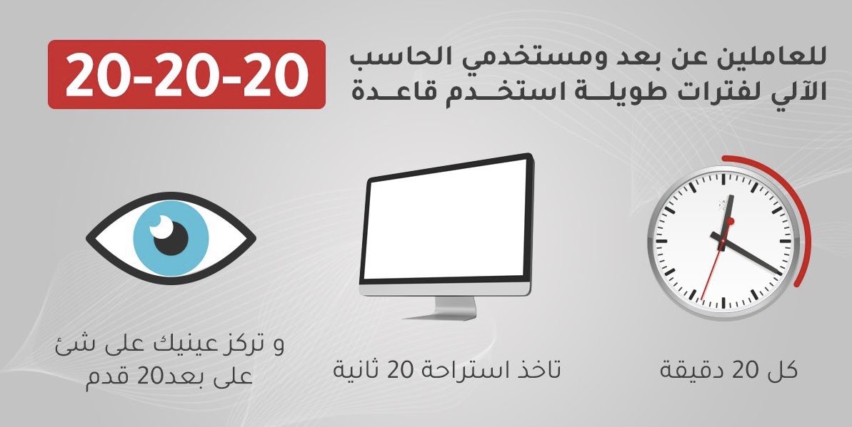 "كل 20 دقيقة ، انظر الى شيء يبعد 20 قدمًا و لمدة 20 ثانية على الأقل"