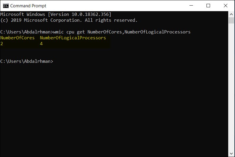 وبعد تشغيل البرنامج مباشرًة ستري في الجزء السفلي كما موضح في الصورة أعلاه عدد الأنوية في خانة Cores وعدد خيوط المعالجة الوهمية في خانة Threads.