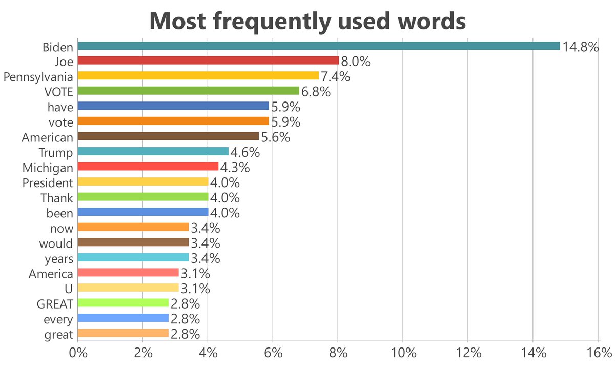 سأضع بين يديكم تحليل لتغريدات #ترمب #بايدن خلال الأسبوع المنصرم موضحا الكلمات الأكثر استخداما في التغريدات لكل منهما ونوع التغريدات وغيرها كثير في هذا الثريد.. #الانتخابات_الرئاسية_الأميركية