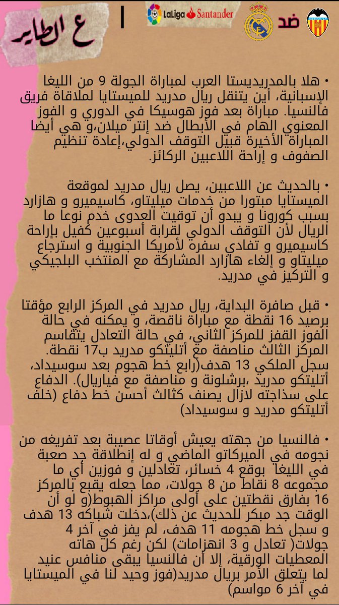 مقال ع الطاير لمباراة فالنسيا ضد ريال مدريد