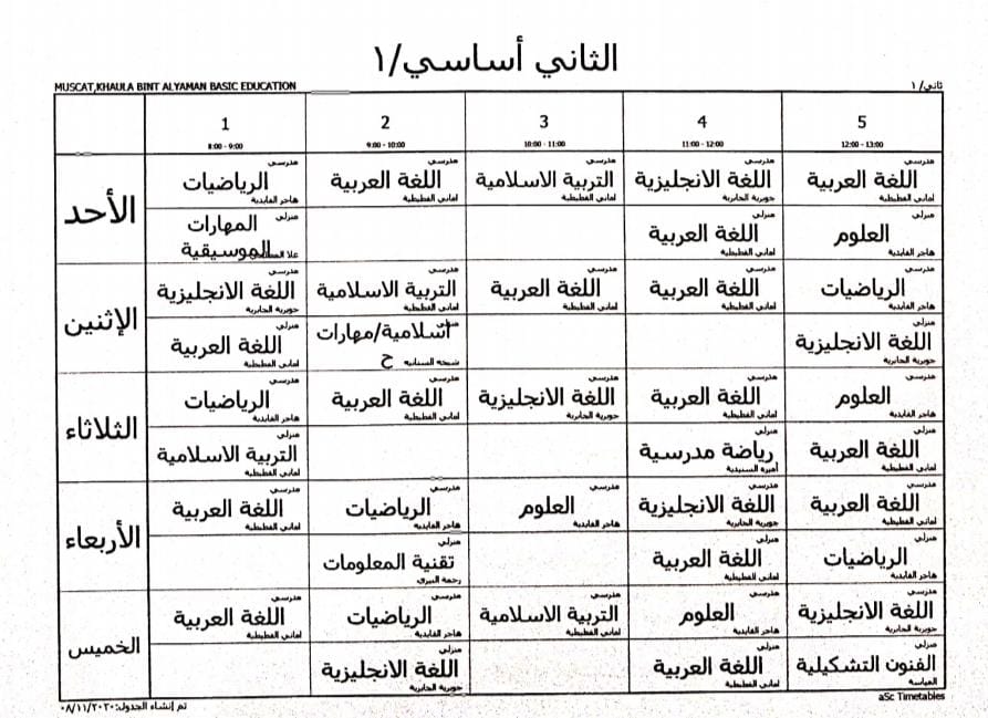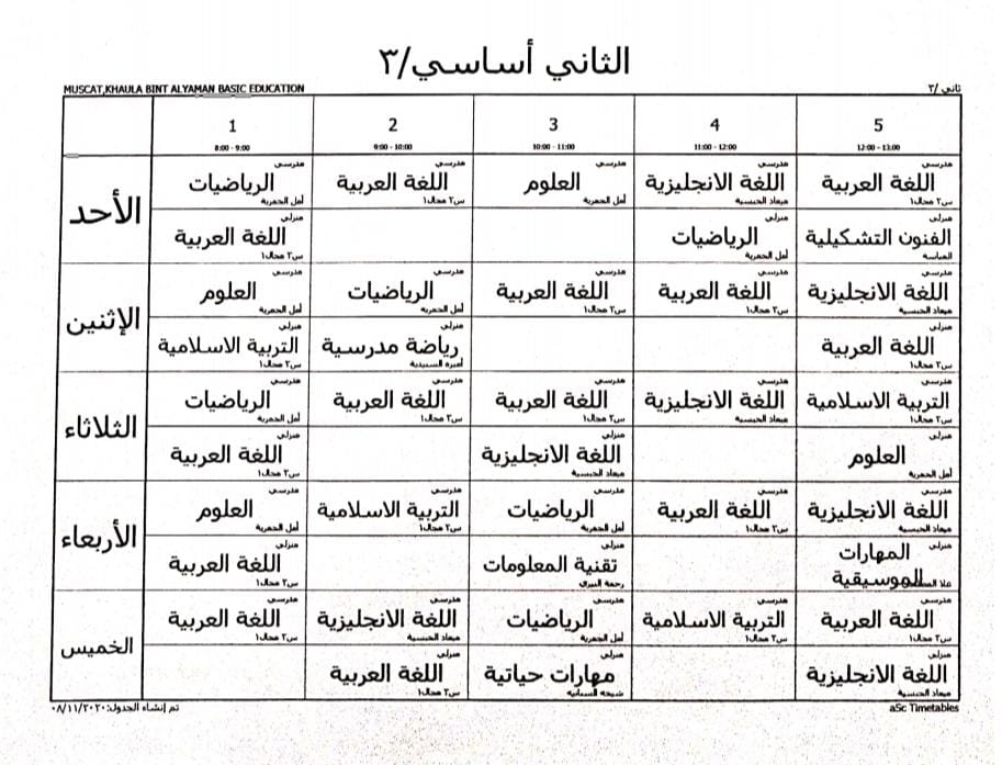 *مدرسي: الحصص التي يتعلمها الطالب أثناء دوامه في المدرسة