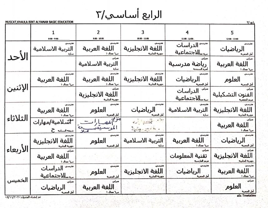 في سلسلة التغريدات الآتية سنرفق لك الجدول الدراسي للصفوف من (١-٤).