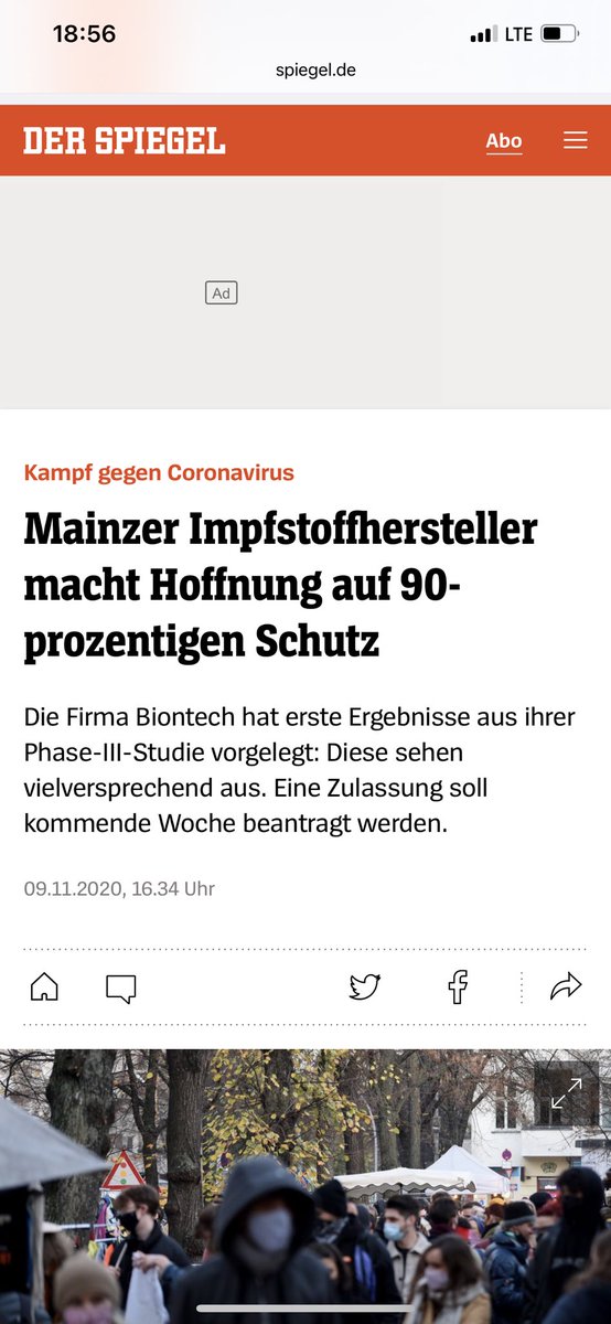 اعلنت شركة بيونتك الالمانية اليوم نتائج المرحلة الثالثة من اللقاح وكانت واعدة جدا حيث وصلت نسبة الكفاءة الى٩٠٪ وهو اول لقاح يصل الى هذه النسبة
