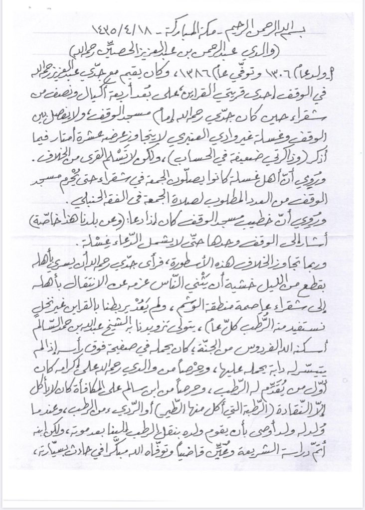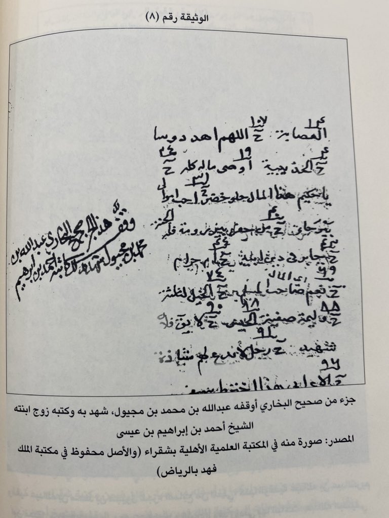 جزء البخاري المذكور وجدت عليه تملك جدي عبدالله الذي تزوج لطيفة بنت الشيخ عبدالعزيز الحصين وكان ضمن موجودات مكتبة شقراء كما أن هناك تملكات له في مكتبة المدينة ربما انتقلت مع الشيخ ، العلامة عبدالله عبدالرحمن أبا بطين ربما سقط الاسم الأول سهوا ، بيت الحصين في سكة الحصنان أسفل السوق