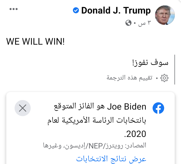 🥚من امتى الاعلام بيتولى اعلان فوز رئيس وليه فيسبوك وتويتر مع كل كلمة لترامب بيكتب ان بايضن هو الرئيس "المحتمل " وليس المنتخب