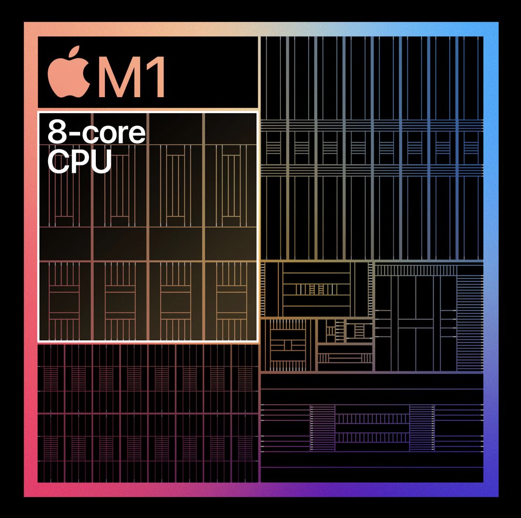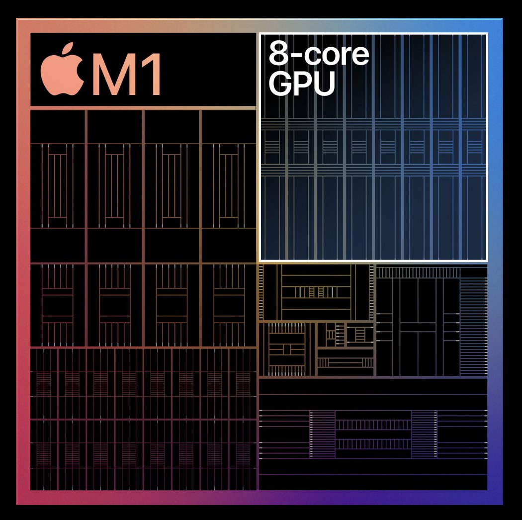 يحتوي M1 على وحدة معالجة رسومات GPU مدمجة بـ8 أنوية.