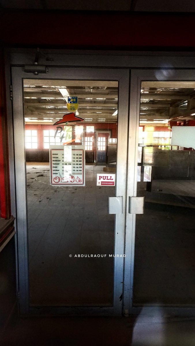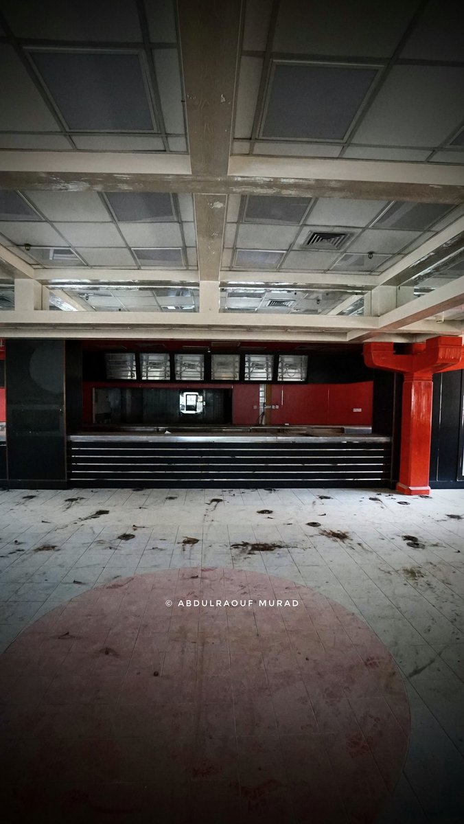 تدخل إلى قاعة الطعام، تلك القاعة التي كانت تضج يوما برواد مطعمي بيتزا هت وبرجر كنج، بأحاديثهم وصيحات أطفالهم، أصبحت اليوم خاوية وموحشة، مازلت تتذكر كيف كنتم تسارعون إلى حجز أحد الطاولات ويتولى بعضكم عملية الطلبات.
