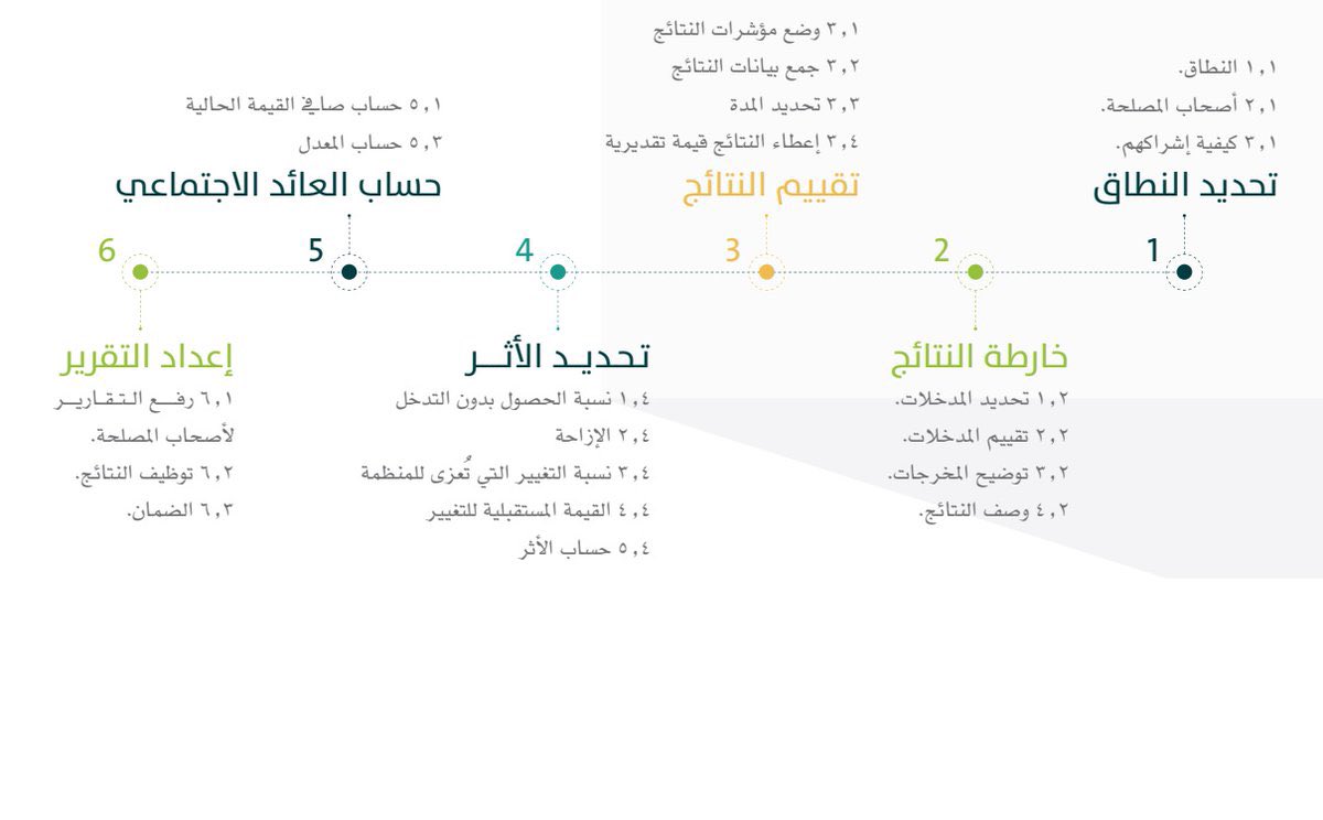 تعتمد منهجية #SROI على تحليل المخرجات والنتائج وصولا للأثر، ثم تقدير القيمة المالية للنتائج والأثر، وتقرير فيما إذا كان المشروع خاسرا أو رابحا من المنظور الاجتماعي.