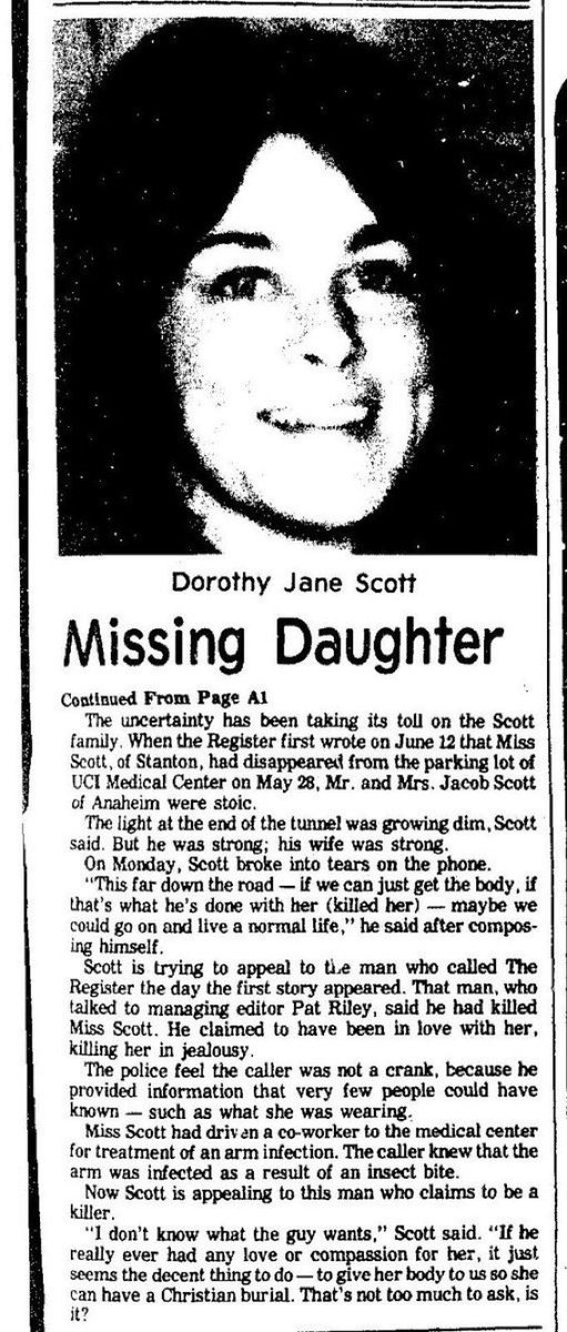 وبعد اسبوع من الاختفاء تلقت والدتها مكالمة من الرجل المجهول ويقول لها هل أنت قريبة دورثي ثم يقول لها لقد حصلت عليها ويغلق الخط