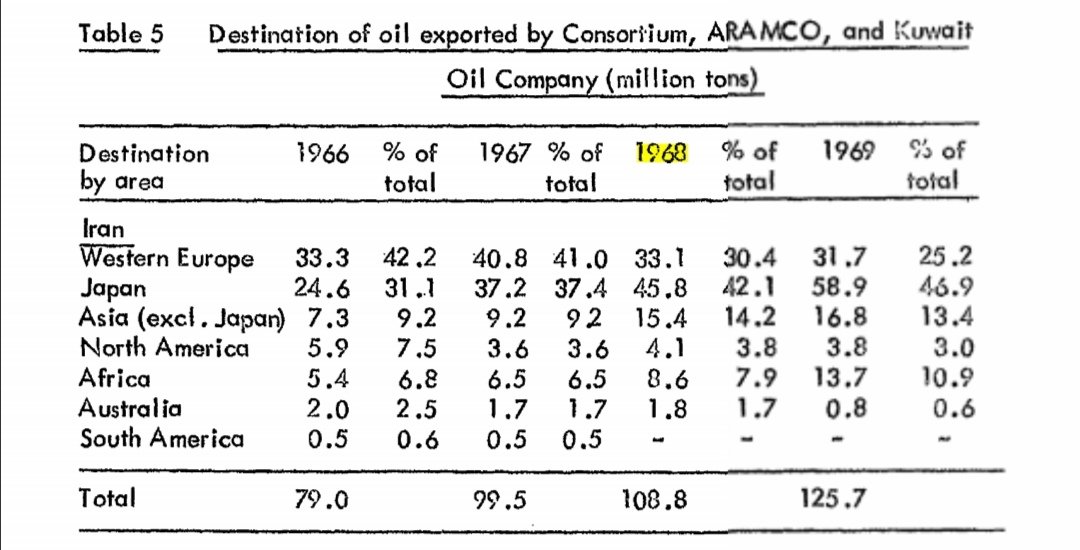✅هذه جدول بصادرات ايران لكل العالم خلال فترة قبل بناء الخط و مابعده(1966~1969)ومعظمه يُصدَر من جزيرة خرج وبندر عباس