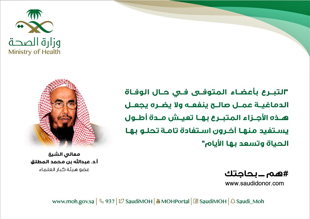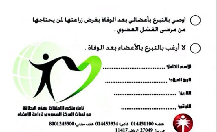 يحق لاي بالغ رجل او أمرأه ان يوصي بالتبرع بأعضاءه والتسجيل لدي المركز السعودي لزراعة الأعضاء @scot_ksa