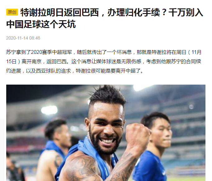 ✍️ صحيفة "sohu" الصينية| "اللاعب أليكس تيكسيرا يعود إلى البرازيل غدًا الأحد. هذه الأخبار حزينة للكثيرين بعد صعوبة الاتفاق على تمديد عقد اللاعب ووجود اهتمام من فريق في غرب آسيا. من المحتمل مغادرة تيكسيرا الدوري الصيني. موضوع تجنيس اللاعب ينادي به الجميع لكن عليهم الهدوء".
