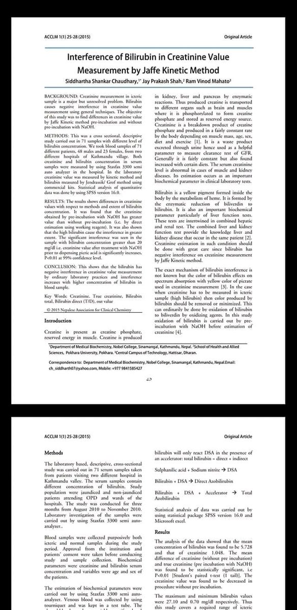 الحل:هتحط ١حجم من السيروم (١٠٠أو ٥٠ ميكرو) على ٥ حجم من هيدروكسيد الصوديوم (٥٠٠ أو ٢٥٠) و تحضنهم مدة من ٥ ل ٧ دقايق قبل إضافة حمض البيكريك ثم تضيف ٥ حجم من حمض البيكريك (٥٠٠ أو ٢٥٠) و تدخلهم على الجهاز مباشرة و كده ان شاء الله هتحصل على نتيجة سليمة بدون تداخل أو تأثير للبليروبين