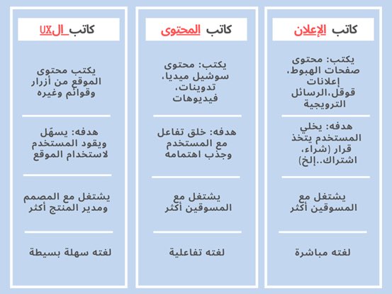 ممكن تكون من مهامك كتابة محتوى الموقع\التطبيق أو أي منتج رقمي فحاول إنك تتعلمها لأنها رح ترفعك درجة عن غيرك 👍🏻