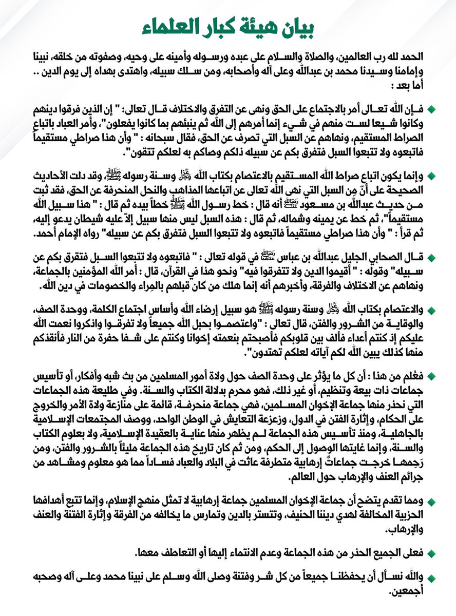 بيان الهيئة أكد أن هذه الجماعة #إرهابية وأوضح بالحقائق ما هي أهدافها ولماذا تسعى للتفرقة والنخر في جسد الأوطان المستقرة ..
