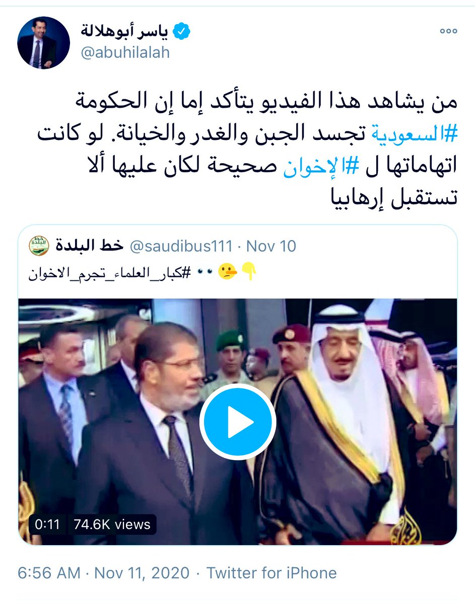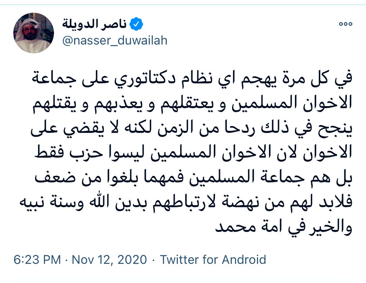 ... ويؤكد أن الجماعة تستخدام أدواتها بدءً من #الدوحة والتي يقيم فيها قائدها والإرهابي الأول #يوسف_القرضاوي وليس انتهاءً بالغرف المغلقة في #لندن، #كندا و #تركيا