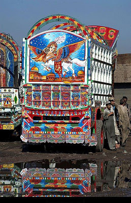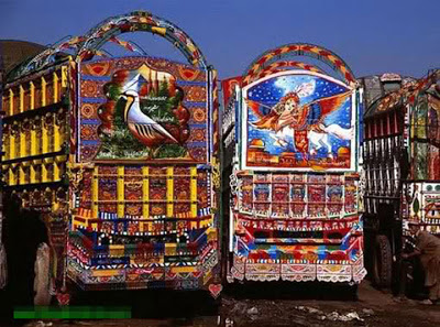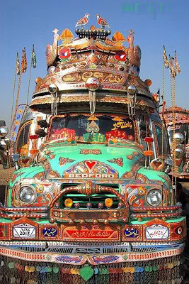 والباكستانيون يعرفون صاحب الشاحنة قبل الاطلاع على لوحة أرقامها ، من الرسومات والنقوش التي تغطيها ، فشاحنات إقليم #خيبر_بختون_خواه مثلاً عليها صورة امرأة مجنحة بجسد حصان ، يتبع>>>