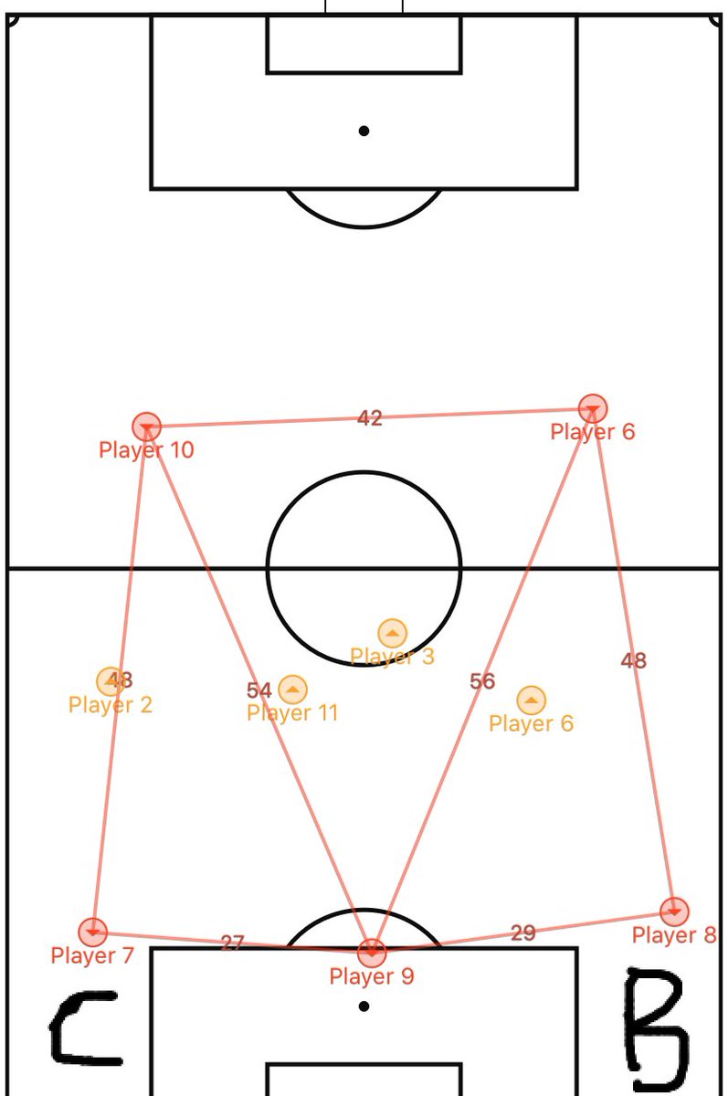 الحالات التي يحصل فيها الفريق البرتقالي على الكرة، يكون هدفهم هو الوصول إلى 5تمريرات بينهم.