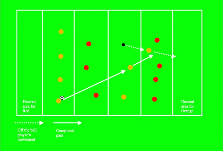 ثم ستكون طريقته الوحيدة للإحتفاظ بالكرة هي تمرير الكرة لزملائه في -منطقة الوسط- هذا سيأخر تقدمهم نوعًا ما، لذلك لا توجد طريقة للعب في هذا التمرين، بقدر ما يكون الإعتماد على طريقة حركة الفريق واللاعبين في تلك المناطق مع المهارات الفردية .