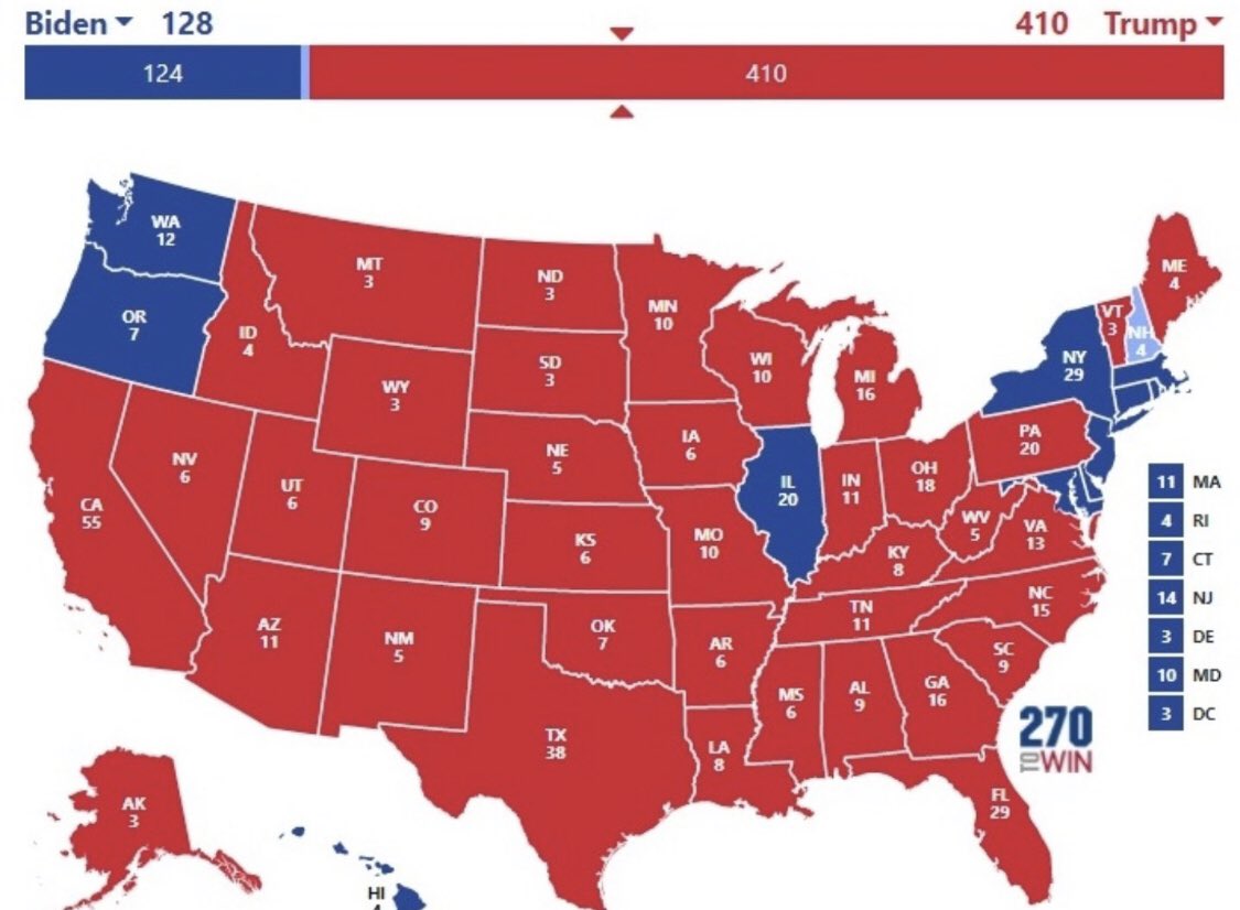 ”. “ترامب: 410 ، بايدن: 128”.
