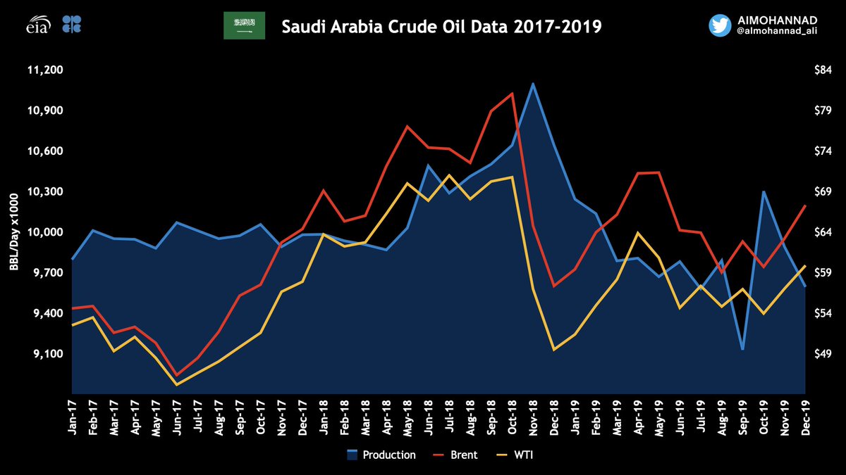 واذا عاد السعر للانخفاض تقوم #السعودية بخفض الانتاج وبالتالي تنخفض أيضًا ارقام صادراتها النفطية للاسواق. و هذا يؤكد ان 🇸🇦 تحاول الحفاظ على سوق أقل تقلبا من خلال تصحيحها بطريقة متتالية و انها تسعى الى استقرار الاسعار بدلا من التقلبات والتذبذبات العالية 3️⃣