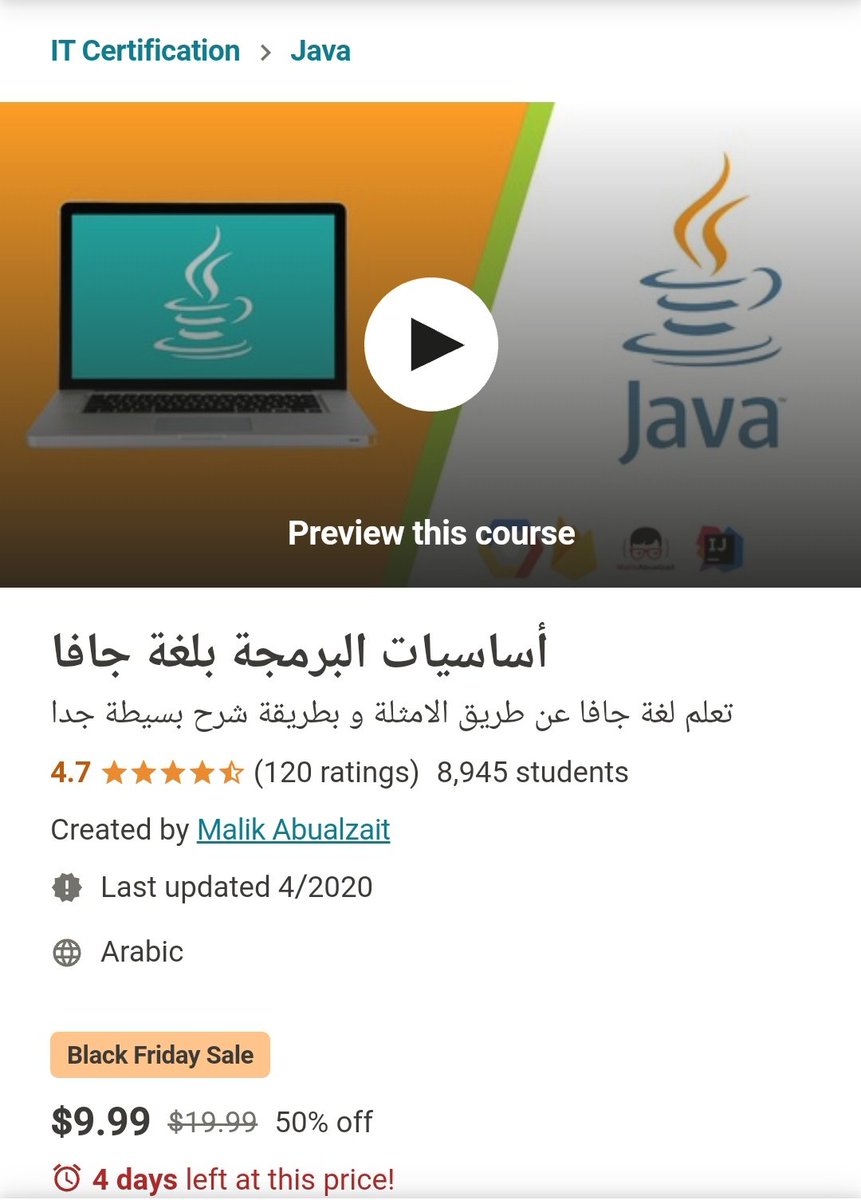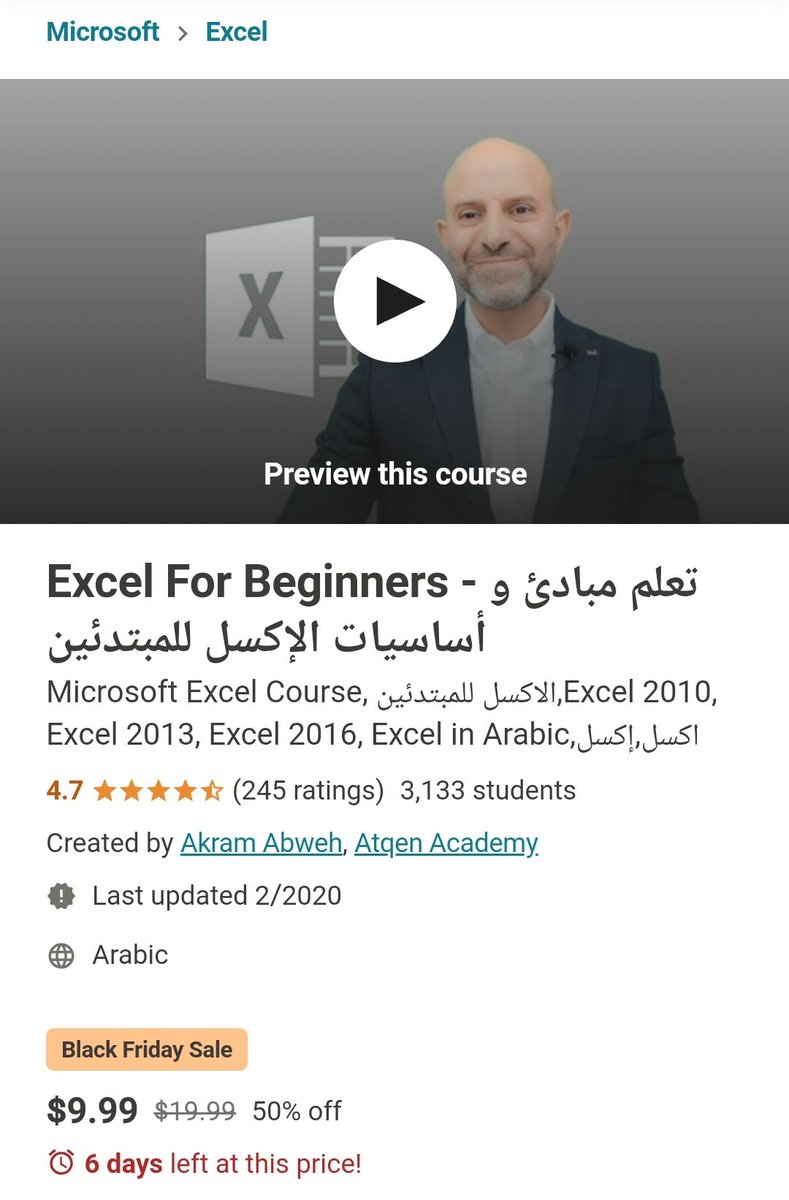 هذه الدورة نزلتها مرتين قبل كذا ؛ المرة ذي وصلت لأقل سعر بعد تخفيض البلاك فرايدي ❤