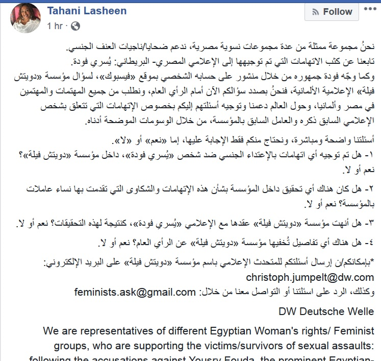 ولعل الإثنين كان يؤديان مسرحية إسمها "ربط التحرش بإعتباره إضطهاد للمرأة بالمجتمع والشعب"وهو هدف علماني نسوي مهم"على سبيل إرهاب الشعوب