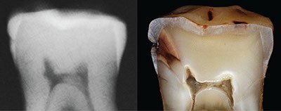 يمكن أن يصل هذا النوع من التسوس إلى مرحلة متقدمة دون أن يكون واضحاً للعين المجردة، وولذلك يحتاج الطبيب نوع خاص من الاشعة لإكتشافة خلال التشخيص والكشف الدوري